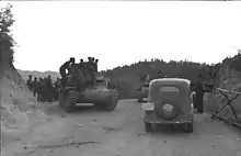 After the Italian surrender in 1943, some 131 Semovente da 75/18 were seized by the Germans and the production of another 55 was authorized.[9] They were, in combination with other Semovente models, issued to 12 divisions (9 infantry, one mountain, one Jäger and one Grenadier) and 3 assault-gun brigades as well as to the 12th SS Polizei Panzer Company.[14] All units were intended for service in Italy or the Balkans. They were designated StuG M42 mit 7,5 KwK L 18(850)(i).[2]