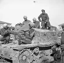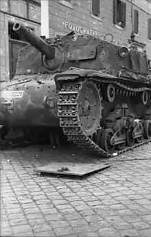 The Semovente da 75/18s were deployed in the North African campaign and during the Allied invasion of Sicily, alongside M tank units to provide additional firepower.[4] Despite the fact that they were not designed to fight other tanks, their 75 mm howitzer proved ideal (thanks to its low muzzle velocity) for firing HEAT shells; its 5.2 kg HEAT shell ("Effetto Pronto" in Italian) could pierce 80 mm of armour at 500 meters, and could thus defeat tanks such as the US built M3 Grant and M4 Sherman used by the British Army.[9] As such, these machines were responsible for many of the successes by the Italian armoured troops during 1942–43, when the medium tanks (which were all armed with a 47 mm M35 gun) were no longer effective. On another account, the Semovente da 75/18 on M14 chasis allowed the 132nd Armoured Division Ariete and the 133rd Armoured Division Littorio a somewhat wider tactical repertoire until British deployment of U.S. medium tanks negated that small advantage.[10]