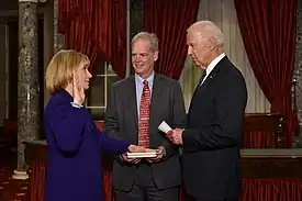 Hassan being sworn in to the U.S. Senate by Vice President Joe Biden.