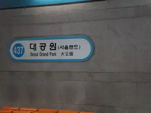 - ↑ "Seoul Grand Park". Seoul Metro. Archived from the original on 2017-11-07. Retrieved 2017-11-03.