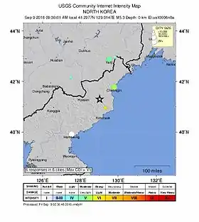 - 1 2 "M5.3 Explosion – 19 km ENE of Sungjibaegam, North Korea". United States Geological Survey. 9 September 2016. Archived from the original on 9 September 2016. Retrieved 9 September 2016.
