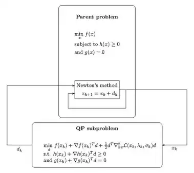 SQP methods solve a sequence of optimization subproblems, each of which optimizes a quadratic model of the objective subject to a linearization of the constraints. If the problem is unconstrained, then the method reduces to Newton's method for finding a point where the gradient of the objective vanishes. If the problem has only equality constraints, then the method is equivalent to applying Newton's method to the first-order optimality conditions, or Karush–Kuhn–Tucker conditions, of the problem.