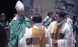 Sergio Méndez Arceo (28 October 1907 in Tlalpan – 5 February 1992 in Morelos) was a Mexican Roman Catholic bishop, activist and human rights supporter. A product of a wealthy family, Méndez Arceo's father was a successful lawyer and his uncle was a prominent archbishop believed to be involved in the church-state conflict of the 1920s.[1] Méndez Arceo graduated from the Pontifical Gregorian University of Rome and served as a Seminary professor in Mexico.[2] He became Roman Catholic Bishop of Cuernavaca, Morelos, in 1953 and served in that capacity until 1983.[3]