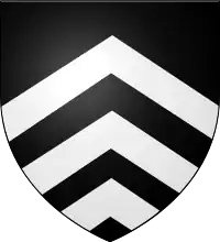 Coat of arms of Serlo de Lansladron, Lord of Lansladron, Sable, three chevronels argent.