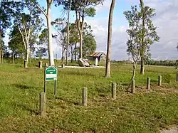 Several graves have been identified at the southwest corner of the site, near the road frontage. This area has been cleared of saplings and undergrowth, leaving naturally re-vegetated eucalypts and grasses. The remainder of the block is open woodland of principally casuarina, wattle and grass tree. There has been a high level of disturbance of the reserve through frequent fires and later grazing, which may account for the high proportion of more resilient casuarina and wattle at the expense of other indigenous species such as eucalypts and bloodwood. While there are no old-growth trees on the reserve, the original mix of species survives, and there is a particularly high diversity of indigenous flora, including one species of wildflower found only within the reserve. The vegetation mix is similar to that in the nearby Serpentine Creek Conservation Park, and, with so much of Redland Bay's indigenous vegetation lost to farming and encroaching residential development, remains important to the genetic exchange among plant species.[1]