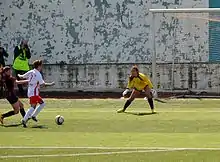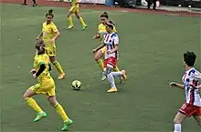 Seval Kıraç (white/red mid ) attacking Kireçburnu Spor in the 2015–16 season.