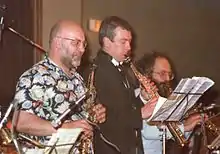 In 1983 was the first of the venues Saxophone Festivals, supported by the Arts Council of Great Britain. Presented over 3 nights, the first coupled Bobby Wellins’ Quartet with Lol Coxhill’s Hot Lava Band; the following night, Tony Coe’s Quartet and the Alan Skidmore/Tony Oxley Duo; the final night Stan Sulzmann and John Taylor opened the proceedings before the climax of Trevor Watts’ Moire Music. This was a ten-piece band that included four saxophonists and two violinists, and it played to a packed house. Lol Coxhill was MC, a role in which he had become accustomed at festivals, and as Jack Massarik pointed out in his review in the London Evening Standard (28 February 1983), Coxhill explained wryly: "I first got into this as a ruse to be near my idols, but things didn’t go quite as planned when I turned out to be one of the finest musicians in the world." Massarik continued, "The ice thus broken, he retired to 'sit at the feet of the master' as (Tony) Coe did indeed give a magisterial performance both on tenor sax and clarinet."[3]