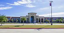 The school is located in the Katy Independent School District, and has the distinction of being the largest high school construction project at one time in the state of Texas.[5] Seven Lakes was designed by PBK Architects, as were many other area schools.[6] It is also the second largest, as well as the most expensive, school in the United States to be built at one time. The total cost of the school came around to $77,424,704 after construction was complete.[6] The name of the school is derived from two major communities that are zoned to it, Seven Meadows and Grand Lakes, taking "Seven" from the name of the Seven Meadows community and "Lakes" from the name of the Grand Lakes community.[7] While the school is meant only for a maximum of 3,000 students, schools in Katy ISD often become overcrowded due to the rapid development in the area as was the case in 2012, when Seven Lakes reached its peak of 3,957 students.