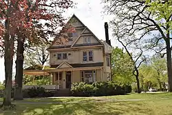 Seven Oaks, also known as the Dixon House, is a historic building located in Sac City, Iowa, United States. The house is locally significant as the finest example of the Queen Anne style.[2] The 2½-story frame structure was designed by Storm Lake, Iowa architect J.M. Russell. The sun porches were designed by the prominent Des Moines architectural firm of Proudfoot & Bird. Weatherboard covers the exterior of the first two floors and the gable ends are composed of wood shingles. It has a fieldstone basement and brick chimneys. It was the first residence in town to have electricity because it had its own generator.[2] The house was built by Eli and Amie Baily for their family home. He was a prominent local banker. It passed to their daughter and son-in-law Paul and Elizabeth Dixon. Paul owned the family lumber company. The house was listed on the National Register of Historic Places in 1996.[1]
