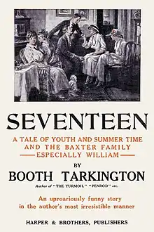 Seventeen: A Tale of Youth and Summer Time and the Baxter Family Especially William is a humorous novel by Booth Tarkington that gently satirizes first love, in the person of a callow 17-year-old, William Sylvanus Baxter. Seventeen takes place in a small city in the Midwestern United States shortly before World War I. It was published as sketches in the Metropolitan Magazine in 1915 and 1916, and collected in a single volume by Harper and Brothers in 1916,[1] when it was the bestselling novel in the United States.[2]