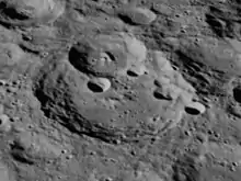 Seyfert is a prominent lunar impact crater that is located on the far side of the Moon. It was named after American astronomer Carl Keenan Seyfert.[1] It lies behind the eastern limb of the Moon, to the east of the crater Espin. Just to the north of Seyfert is the crater Harriot and equally close to the south is Polzunov.