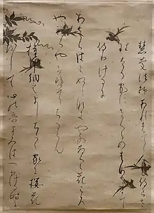 The Shūi Wakashū (拾遺和歌集, "Collection of Gleanings"), often abbreviated as Shūishū, is the third imperial anthology of waka from Heian period Japan. It was compiled by Emperor Kazan in about 1005.[1] Its twenty volumes contain 1,351 poems. The details of its publication and compilation are unclear.