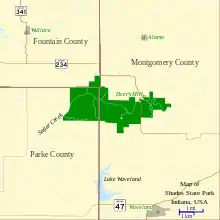 | Location | Parke County, Montgomery County, and Fountain County, Indiana, United States |
