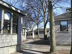 Shady Hill was founded in 1915 by a group of Cambridge families, including John Hubbard Sturgis Jr., Agnes Boyle O'Reilly, and her husband William Ernest Hocking. The school was first held on the "back porch" of the Hockings' house on Quincy Street in Cambridge.[3] The school enrollment quickly outgrew the Hocking home, and the Cooperative Open Air School (as it was originally known) moved to the Charles Eliot Norton estate at the corner of Scott and Holden Streets in Cambridge. The school took its current name from this location, Shady Hill Square, before moving to the school's current location on Coolidge Hill, also in Cambridge.