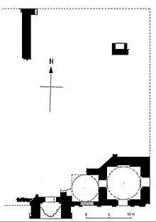 The north side walls of the building come from an iwan circulating around the inner courtyard. But no excavation was ever done to prove this.[4]