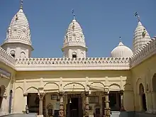 Although the present-day temple structure features modern renovations, the nucleus of the temple is quite old.[5] It features an oblong enclosure of shrine cells depicting the older sculptures.[6] The temple has a courtyard. Two sides of the structure incorporate Chandella period structures. The temple and the images installed thus span 10 centuries.
