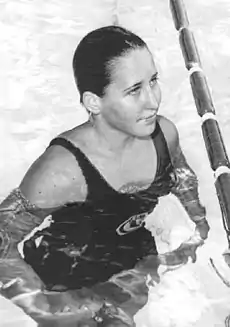 Sharon Evans Finneran (born February 4, 1946), also known by her married name Sharon Rittenhouse, is an American former competition swimmer, Olympic medalist, and former world record-holder in three events. She represented the United States as an 18-year-old at the 1964 Summer Olympics in Tokyo. Finneran received a silver medal for her second-place finish in the women's 400-meter individual medley – completing an all-American sweep of the event with Donna de Varona and Martha Randall.[1] In 1981 she was inducted into the International Swimming Hall of Fame.[2]