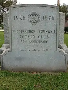 ![]() Memorial celebrating the 50th Anniversary of the Sharpsburgh-Aspinwall Rotary Club (sic). |