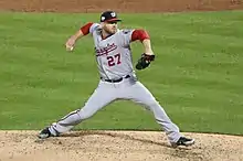 While still struggling with his home run rate and injury issues, Kelley enjoyed a rebound performance over the first half of the 2018 season, pitching to a 3.34 ERA through the month of July.[37] On July 31, 2018, Kelley was called to pitch the ninth inning with the Nationals holding a 25–1 lead over the New York Mets. After allowing a two-run home run to Austin Jackson, Kelley angrily threw his glove to the ground and glared into the Nationals' dugout. On August 1, Kelley was designated for assignment by the Nationals, who called his outburst "selfish" and "disrespectful to the organization". Kelley said he "acted like a baby" but denied his intent was to show up manager Dave Martinez.[38]
