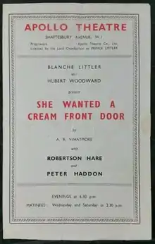 She Wanted a Cream Front Door is a 1947 comedy play by the British writer A.R. Whatmore.