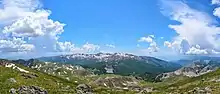 Shebenik National Park (Albanian: Parku Kombëtar i Shebenikut) is a national park in eastern Albania adjacent to the border with North Macedonia. It encompasses 34,507.9 hectares (345.079 km2) and is specifically marked by a mountainous landscape supplied with glacial lakes, valleys, dense coniferous and deciduous forests and alpine meadows and pastures.[2] Elevations in the park vary from 300 metres to over 2,200 metres above the Adriatic at the peak of Shebenik and Jabllanica, hence the name. It dwells a number of endangered species that are fast becoming rare in Southern Europe, including the brown bear, gray wolf and balkan lynx.[3][4][5] The abundance in wildlife can in part be explained by the variety of vegetation types and remote location.