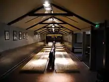 The Sheep Heid Inn also possesses an old fashioned bowling alley, built around 1880,[1] which is reputedly the last such alley in Scotland. The Royal Company of Archers, the City Sheriffs, and the local regiments based at the nearby Piershill Barracks and Duddingston training camps, were all once regulars. The last of the old clubs to survive are the Trotters Club, founded in 1882 and who still meet in the alley once a month.[7]