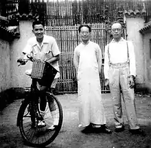 ![]() Shen Congwen (far right) with Gu Chuan (far left) and Zhou Youguang (middle) in 1946 | |||||||||