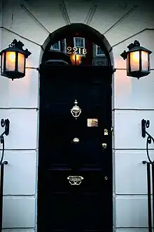 ![]() The exterior of the Sherlock Holmes Museum and doorway marked as 221B | |