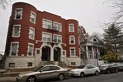 The Sherman Apartments Historic District encompasses four historic residential buildings on Washington and Lyndhurst Streets in the Dorchester neighborhood of Boston, Massachusetts. The district consists of three brick six-unit buildings constructed between 1904 and 1906 by Walter U. Sherman. They were built on the site of an 1831 Greek Revival school building, which was moved by Sherman to 18 Lyndhurst Street and converted into a residential duplex. The three brick buildings are three story Classical Revival structures with modest external decoration.[2]