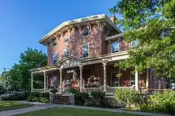 Sherman House is a historic home located at Glens Falls, Warren County, New York. It is a large pink brick building with a profusely bracketed roof and octagonal cupola. It consists of a 2+12-story rectangular block to which has been added four porches and three wings. It is thought to date to the 1840s. The front verandah and rear wing date to about 1900 when it was occupied by the Bemis Eye Sanitarium.[2]
