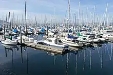 The marina was completed in 1958[2] and underwent a US$80 million modernization beginning in 2004, including a completely replaced marina building.[1] There is 2,700 linear feet (820 linear metres) of guest moorage.[1] Boats at the marina range from kayaks to megayachts, with the largest moorage spaces accommodating yachts up to 250 feet (76 m).[1]