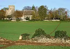 The earliest parts of the Church of England parish church of the Holy Rood are the Norman nave, south aisle and arcade, all of which were built in about 1150.[9] The present Early English Gothic chancel was built in about 1250.[10] The bell tower was added in the 15th century.[10] The present side windows of the nave and aisle are also late Medieval Perpendicular Gothic additions.[10] The Gothic Revival architect C.C. Rolfe restored the building in 1884–88, adding the present rood screen.[10] The church is a Grade II* listed building.[11] Holy Rood church tower has three bells, all cast in 1854 by W. & J. Taylor[12] of Loughborough, who at the time also had a bell-foundry in Oxford.[13] Currently for technical reasons they are unringable.[12] Holy Rood also has a Sanctus bell that Henry III Bagley cast in 1730.[12] Bagley was from Chacombe, Northamptonshire but also had a foundry at Witney.[13] Holy Rood parish is now part of the Benefice of Shill Valley and Broadshire.[14]