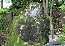 Statue representing Kameju. Every year on the date of Kameju's death, a group of women return to make up the stone.
