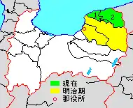 Map showing original extent of Shimoniikawa District in Toyama Prefecture: