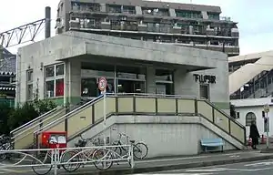 The station consists of two side platforms serving two tracks. The station building is a modern concrete structure and houses a small waiting area, a shop and a staffed ticket window. Access to the opposite side platform is by means of a footbridge.[3][2]