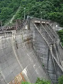 The Shin'inotani Dam (新猪谷ダム, Shin'inotani Damu) is a dam in the city of Hida, Gifu Prefecture, Japan located on the Takahara River, part of the Jinzū River system. The dam is a concrete gravity dam with a height of 56 meters, and is operated by the Hokuriku Electric Power Company. The reservoir created is used by hydroelectric power generation for a total of 56,900 kW. The dam was completed in 1963.[1]