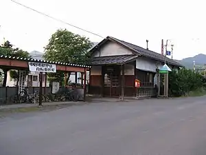 Shinano-Takehara Station is a station on the Nagano Electric Railway Nagano Line and is 29.3 kilometers from the terminus of the line at Nagano Station.