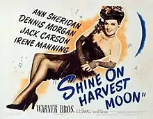 Shine On, Harvest Moon[2] is a 1944 musicalbiographical film about the vaudeville team of Nora Bayes and Jack Norworth, who wrote the popular song "Shine On, Harvest Moon." The film was directed by David Butler and stars Ann Sheridan and Dennis Morgan[2] Sheridan's singing voice was dubbed by Lynn Martin.