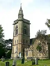 The present building, erected in 1864, replaced a church with a record going back to Norman times. Part of the north aisle and the porch were preserved, together with the Eastcourt Chapel on the south side and part of the nave, the central tower being demolished and the nave extended to form an enlarged chancel. A south aisle was constructed with a new tower at the south-west corner providing a belfry and entrance.