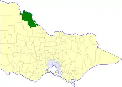 The Shire of Swan Hill was a local government area in north-western Victoria, Australia, along the Murray River. The shire covered an area of 6,550 square kilometres (2,529.0 sq mi), and existed from 1893 until 1995. From 1939 onwards, Swan Hill itself was managed by a separate entity; the City of Swan Hill. After a large-scale statewide amalgamation program by the Victorian Government in 1994–1995, they were reunited under the Rural City of Swan Hill.