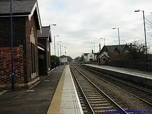 The station is unstaffed and has no ticket provision - all tickets must be purchased prior to travel or on the train. The main building that used to be located here has been demolished, though there are brick waiting shelters still standing on both platforms.[1] Train running information is offered via timetable posters, a help point on platform 1 and CIS screens. Step-free access is available to both platforms via the level crossing at the eastern end.[2]