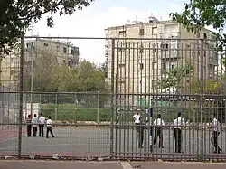 Haredi boys play on the Shmuel HaNavi sports field adjacent to the community center.