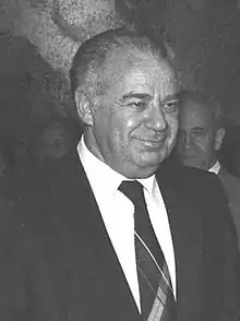 In 1966 he was expelled from the party[3] for trying to promote an abortion bill through the Knesset.[4] So together with two others, he formed the Free Centre in 1967. Tamir was re-elected in 1969, and again in 1973, by which time his party had merged into Likud. He resigned from the Knesset in January 1977 to form the Shinui Party, which failed and very soon broke up. Immediately afterwards he decided to join the new centrist party, the Democratic Movement for Change (Dash). He was returned to the Knesset in the 1977 elections on Dash's list, and was appointed Minister of Justice in the Begin government on 24 October. As Dash disintegrated, Tamir joined the Democratic Movement, before leaving to sit as an independent MK (member of the Knesset). He resigned from the cabinet on 5 August 1980 when his party was frozen out of coalition decision-making. At the ensuing 1981 election he lot his seat.