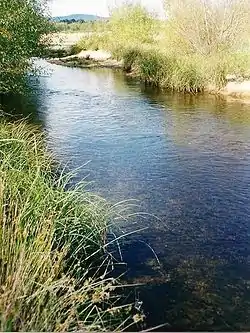 The Shoalhaven River rises on the eastern side of the Great Dividing Range, below Euranbene Mountain, about 350 kilometres (220 mi) southwest of Sydney. The upper reaches of the river flow northwards through an upland pastoral district near the town of Braidwood. The river works its way down into a remote canyon east of Goulburn and emerges into the coastal lowlands at Nowra in the Shoalhaven district, where it is spanned by the Nowra Bridge. The river is joined by thirty-four tributaries, including the Mongarlowe, Corang, Endrick, and Kangaroo rivers, and descends 864 metres (2,835 ft) over its 327-kilometre (203 mi) course.[3]