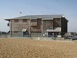 In 1933 the station moved to Kingston Beach opposite Shoreham Harbour.[8] The new boathouse and slipway were built to accommodate the new 41 ft Watson-class RNLB Rosa Woodd and Phyllis Lunn (ON 758) lifeboat.[9] The 1933 boathouse is still standing, but has undergone several alterations to accommodate different lifeboats serving at the station.