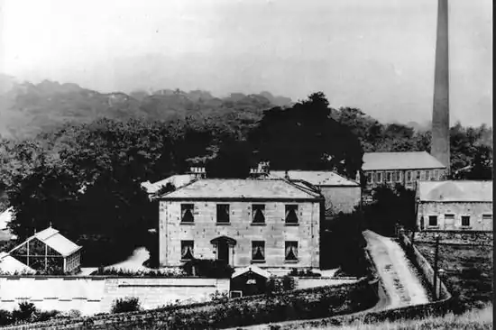 In 1826 John Annandale built a large house for his residence on the mill site. The house, known as Shotley Grove House, is shown in the photograph opposite, taken around 1900. It is one of the few buildings still remaining from the extensive 19th century works which can be seen in the background.