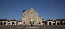 Main plaza at the Shrine of the Most Blessed Sacrament, Hanceville, Alabama. A statue of Mother Angelica's version of the Divine Child is prominently displayed in the plaza square.