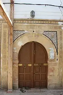 Due to lack of written documents, the history of this mausoleum remained mysterious for a long time. It is mentioned for the first time in the inventory of monuments made by the students of the Bardo Military School in the middle of the 19th century. According to an epigraphic inscription on the front door, it was built in 1738.[3] Some researchers mention that the prayer room was built even before the rest of the monument, during the Zirids reign (between the 11th and 12th centuries).[1] Initially conceived as a simple oratory, it was transformed in 1863 into a mausoleum named after a local Muslim saint, Sidi Saada Kanoun. Since that date, the monument serves as the headquarters of the Sufi brotherhood of Aïssawa. Sidi Saada mausoleum witnessed several extensions and renovation works.[3]