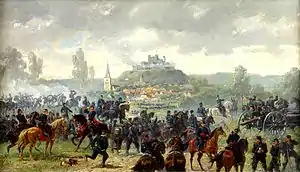 The siege of Lichtenberg was a battle of the Franco-Prussian War that took place on August 9–10, 1870 at Lichtenberg Castle between French and German (Prussian and Württembergian) troops. After a brief but fierce shelling a German force under the command of Generalmajor Hermann Freiherr von Hügel, part of the Württemberg Division (Generalleutnant Hugo von Obernitz) and the Third Army (Crown Prince Frederick William) forced the surrender of the French garrison of Lichtenberg under the command of Second Lieutenant Archer (of the 96th Infantry Regiment). In addition to Lichtenberg, in a single period in August 1870, the German army also defeated the French fortresses of La Petite-Pierre, Marsal and Vitry-le-François.[14][15]