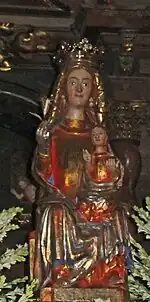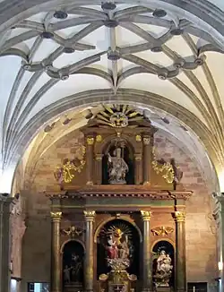In 1666 three reredoses attached to its wall were replaced with a Baroque reredos of Santa María de la Mayor.[17] In a niche in the middle is an image of Santa María de la Mayor, patron saint of Sigüenza.[51]